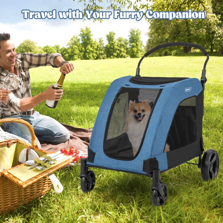 5.Space-saving Folding Design: When not in use, our dog stroller can be easily folded to satisfy your needs. Whether you're heading out on a road trip or simply need to store the stroller in a compact space at home, our foldable design ensures