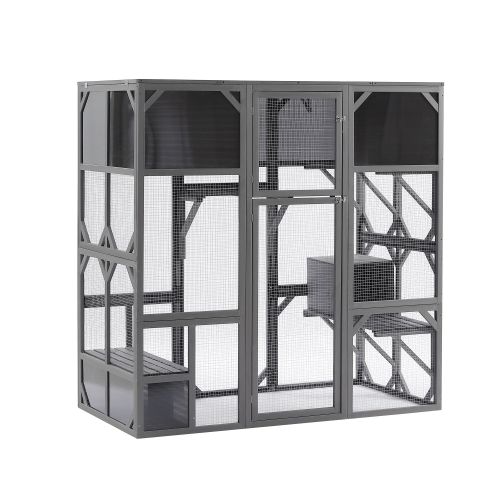 [Walk-in Style Cat Cage]Are you worried about bending down into the cat kennel and cleaning it? Our catio with the TALLER ENTRY DOOR would be nice for you. Oversized convenient front door at 64" tall, allow you to go inside and you can sit on the seating platform to interact with your cats,make feeding and cleaning easy.